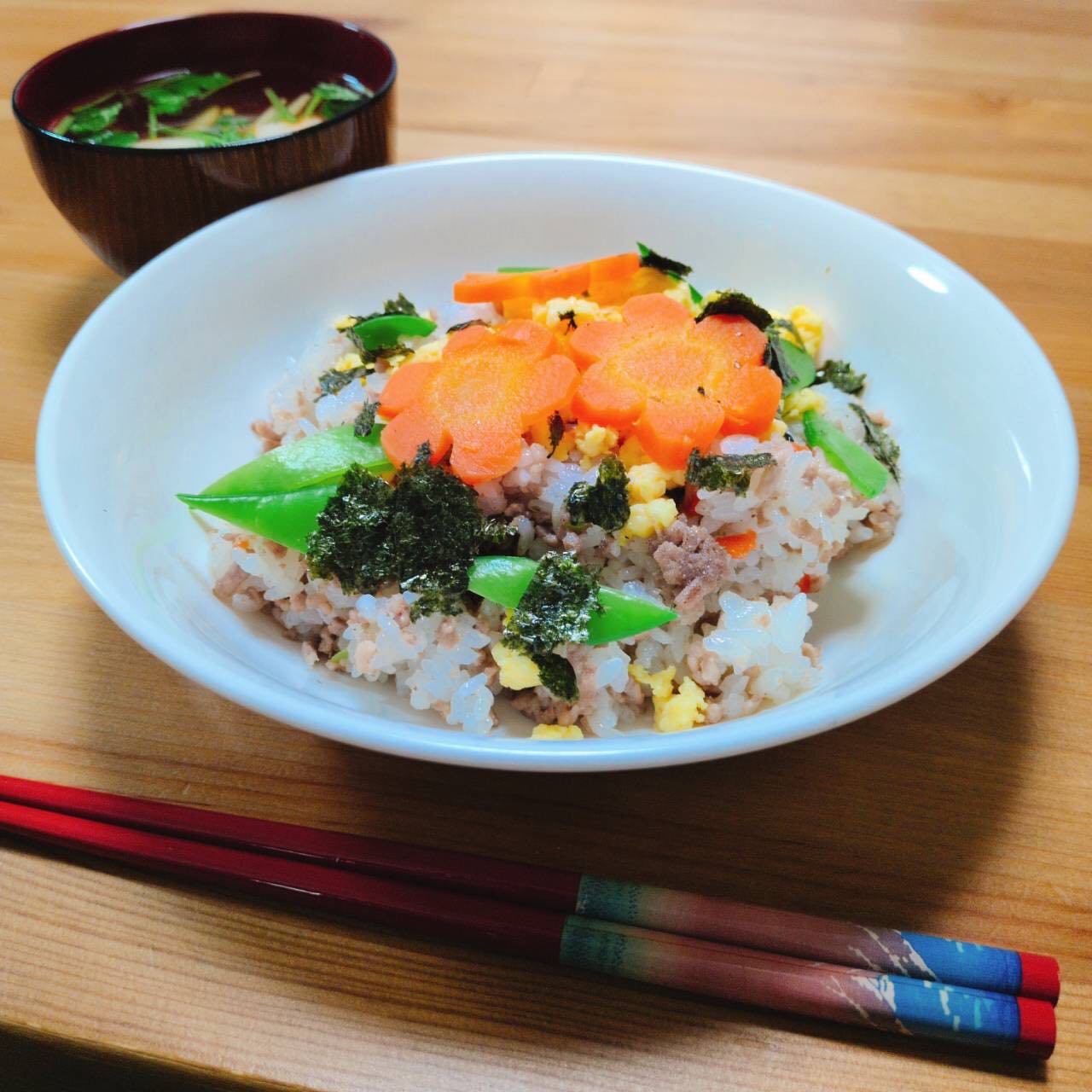 「肉そぼろの彩りちらし寿司」です。